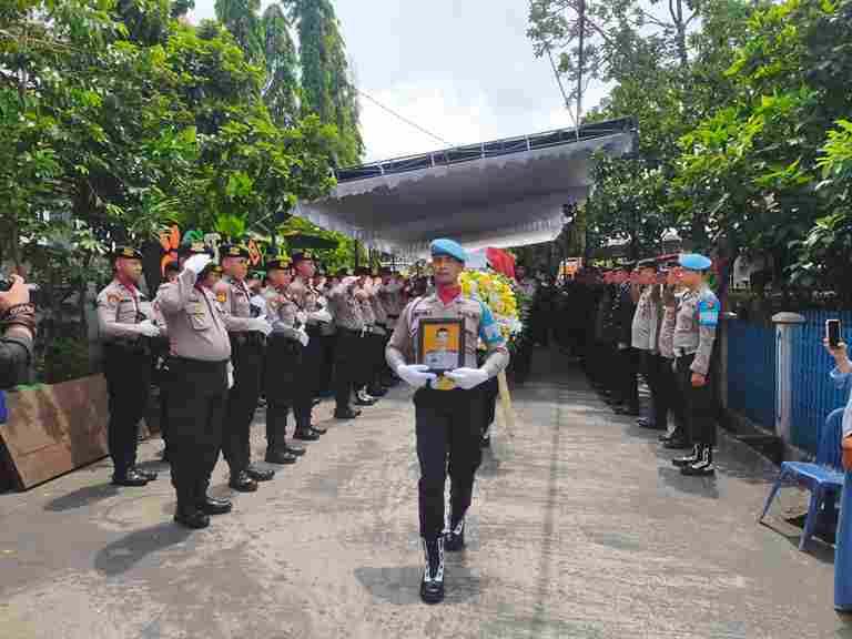 almarhum yang dimulai pembacaan riwayat hidup singkat almarhum selama berdinas di Kepolisian dan selanjutnya pelepasan jenazah dari rumah duka oleh keluarga kepada Institusi Polri dan jenazah dibawa ke tempat pemakaman dengan pengawalan petugas kepolisian.