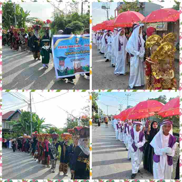 acara tersebut diawali dengan arakan-arakan pawai yang diiringi dengan alat musik drumband MTS PP Syech M.Muhsin dan juga diamankan oleh personil Polsek Payung Sekaki guna mengatur lalu lintas kendaraan.